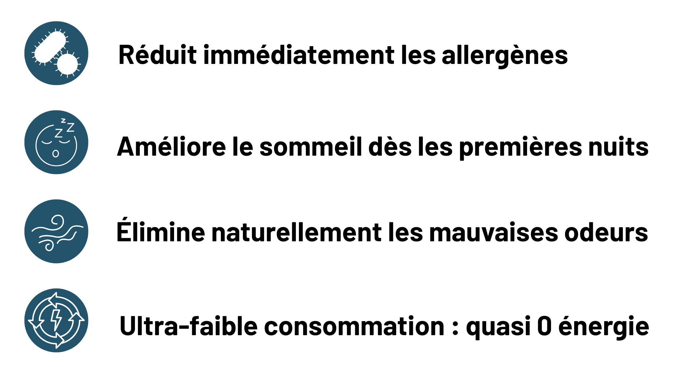 ✔ Soulage les allergies – Moins de congestion, moins d’éternuements, moins d’irritations, et un meilleur sommeil.