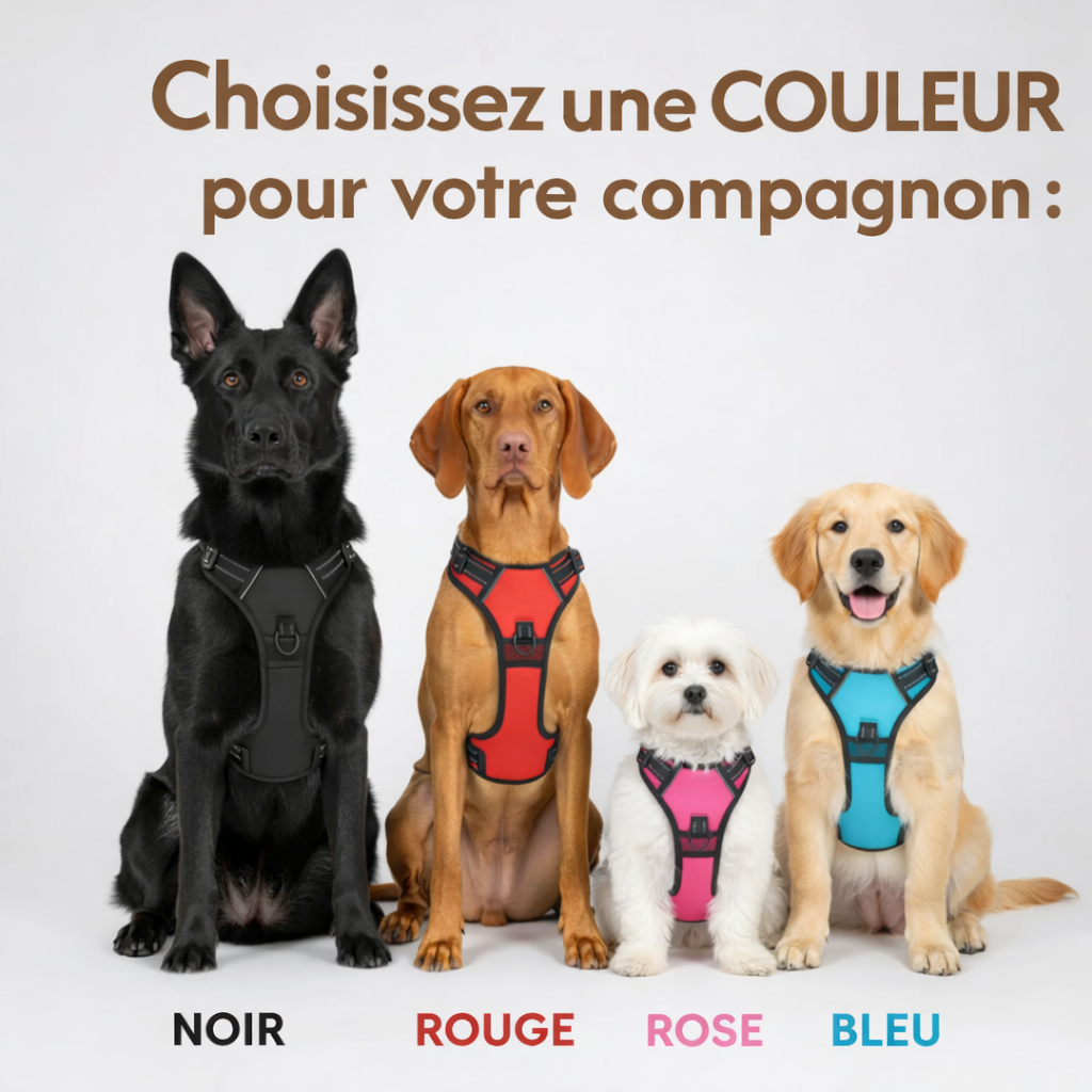 Notre harnais est conçu pour réduire considérablement la traction et rediriger votre chien en douceur.