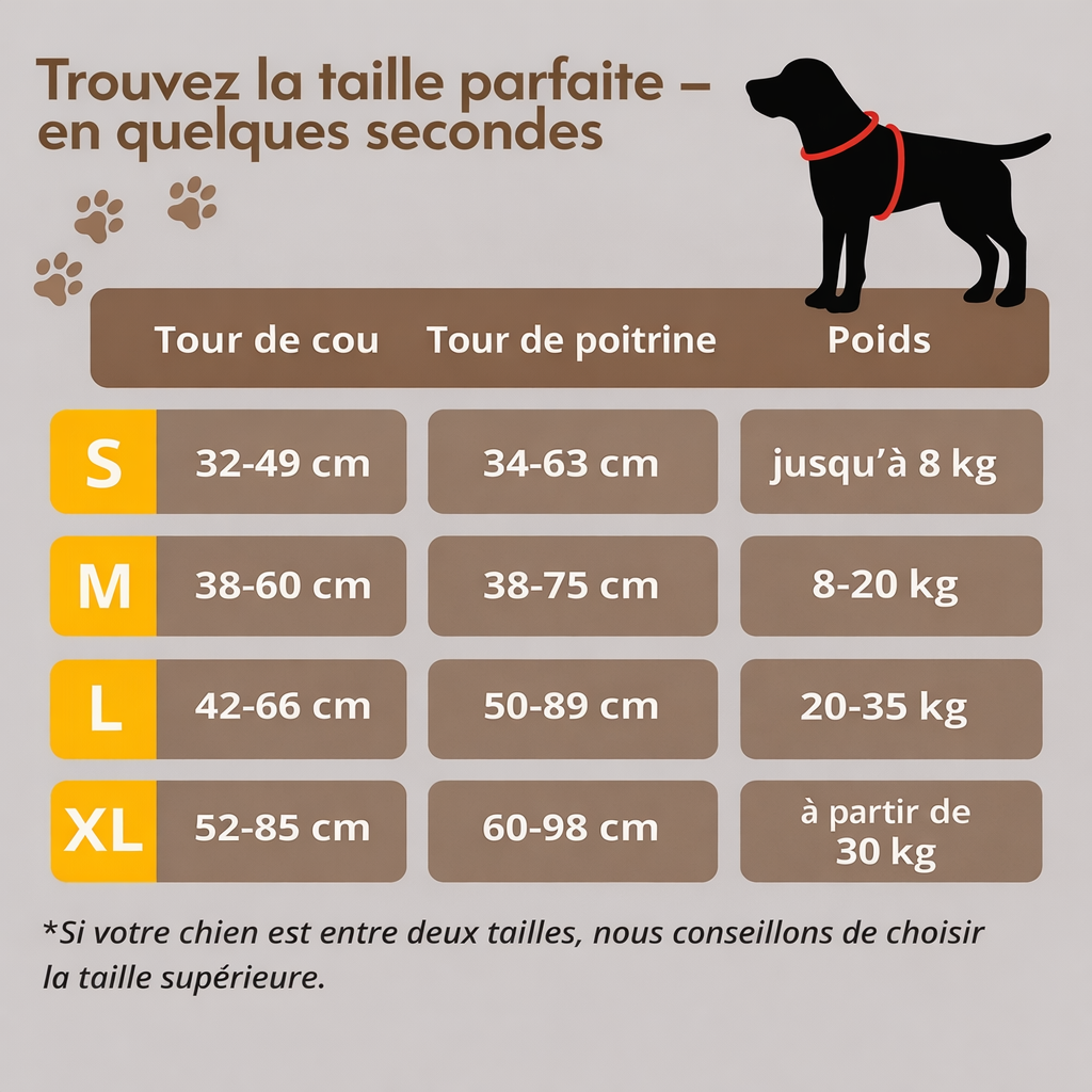 Oui ! Nous savons que chaque chien est unique. C’est pourquoi notre harnais FellStern est disponible en plusieurs tailles, du S au L. Grâce à notre guide des tailles, vous pouvez facilement trouver la taille adaptée à votre chien.